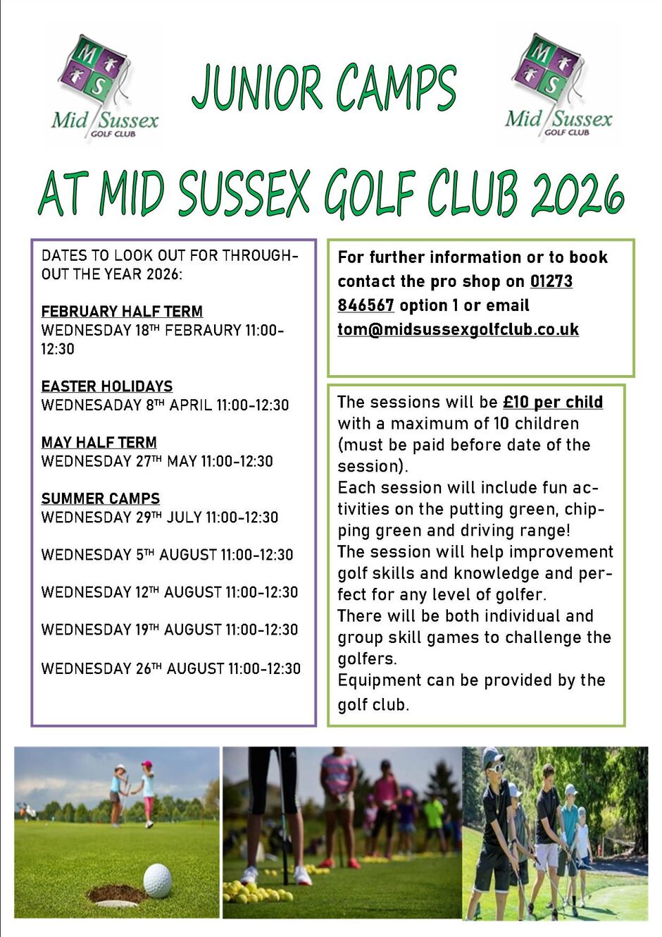 To book call the pro shop 01273 846567 option 1 or email tom@midsussexgolfclub.co.uk